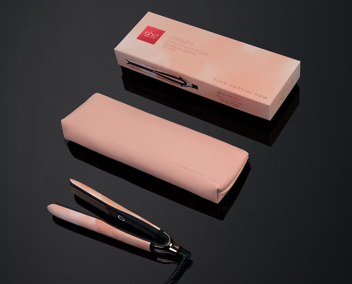 Assuma o controlo sempre que pentear o seu cabelo com o alisador de cabelo ghd platinum+ em cor-de-rosa pêssego intenso graças à sua mensagem «take control now» que lhe recordará da importância de se autoexaminar regularmente.